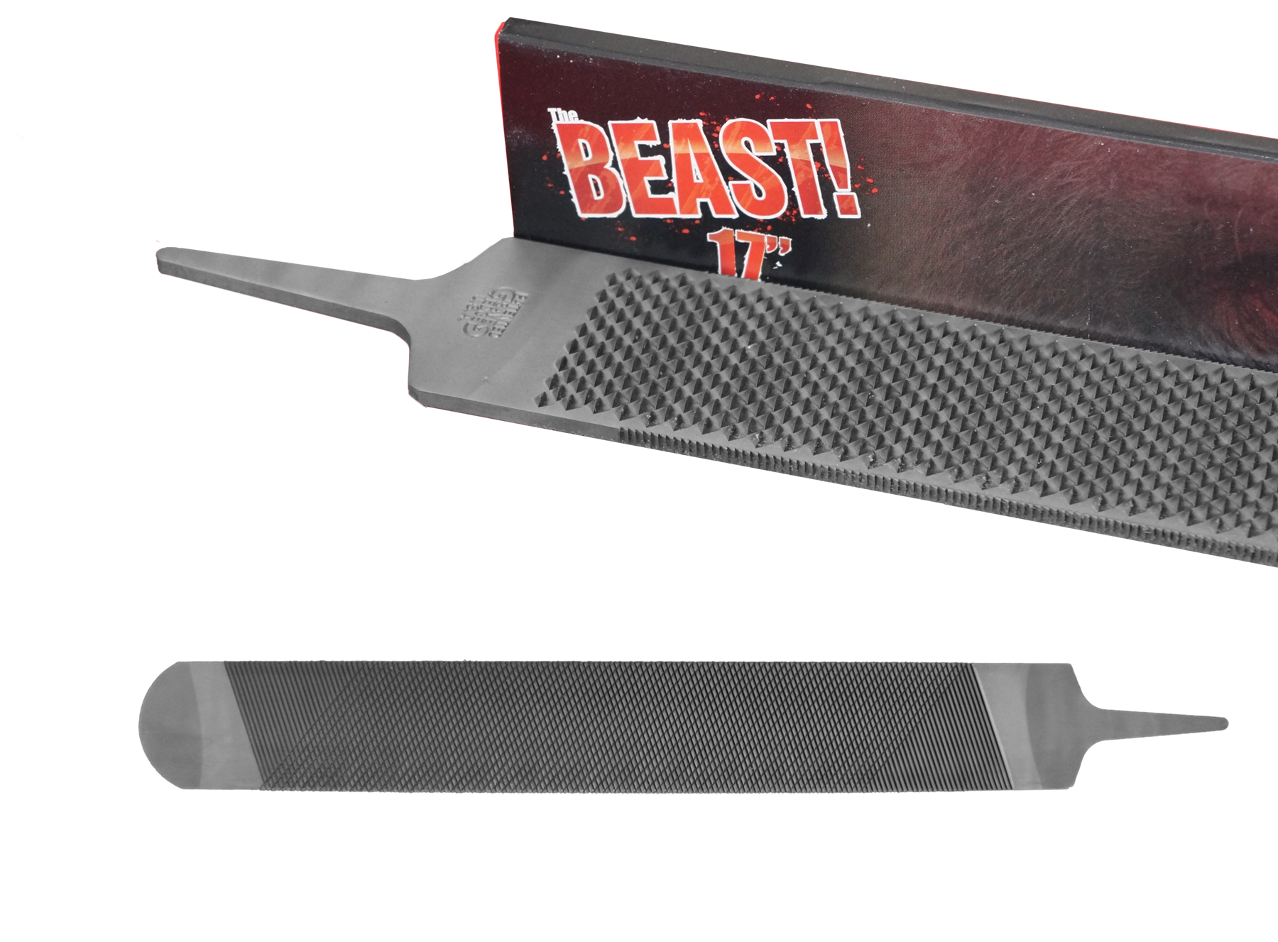 Las escofinas THE BEAST de Save Edge® están disponibles en dos tamaños. Hemos decidido añadir la escofina para cascos de 17" a nuestra gama. Gracias a su superficie más ancha, ofrece una zona de trabajo generosa para trabajar con mayor eficacia en el casco del caballo. Según Save Edge®, la escofina THE BEAST de 17" ofrece aproximadamente un 40% más de superficie de corte que una escofina estándar.